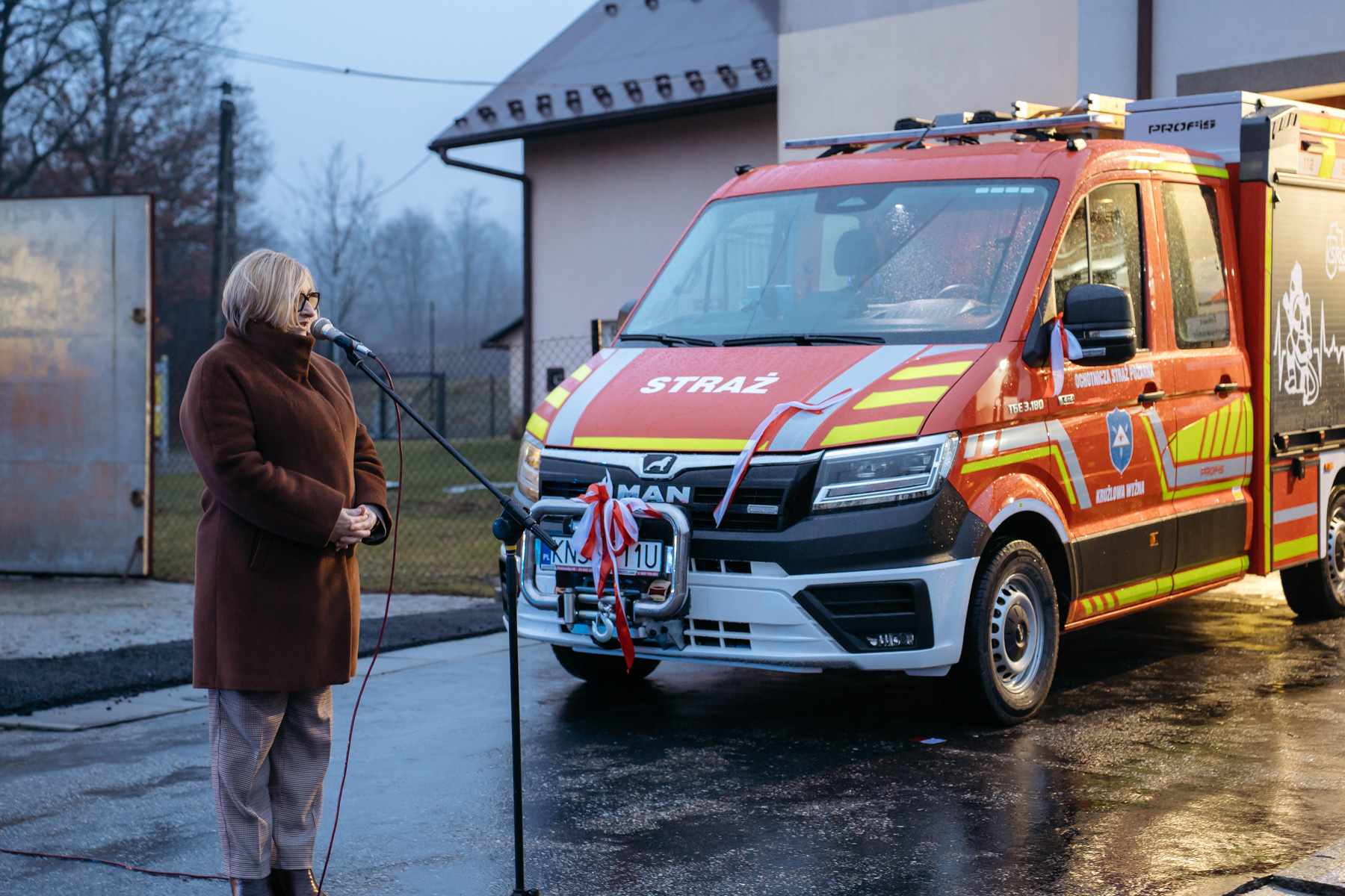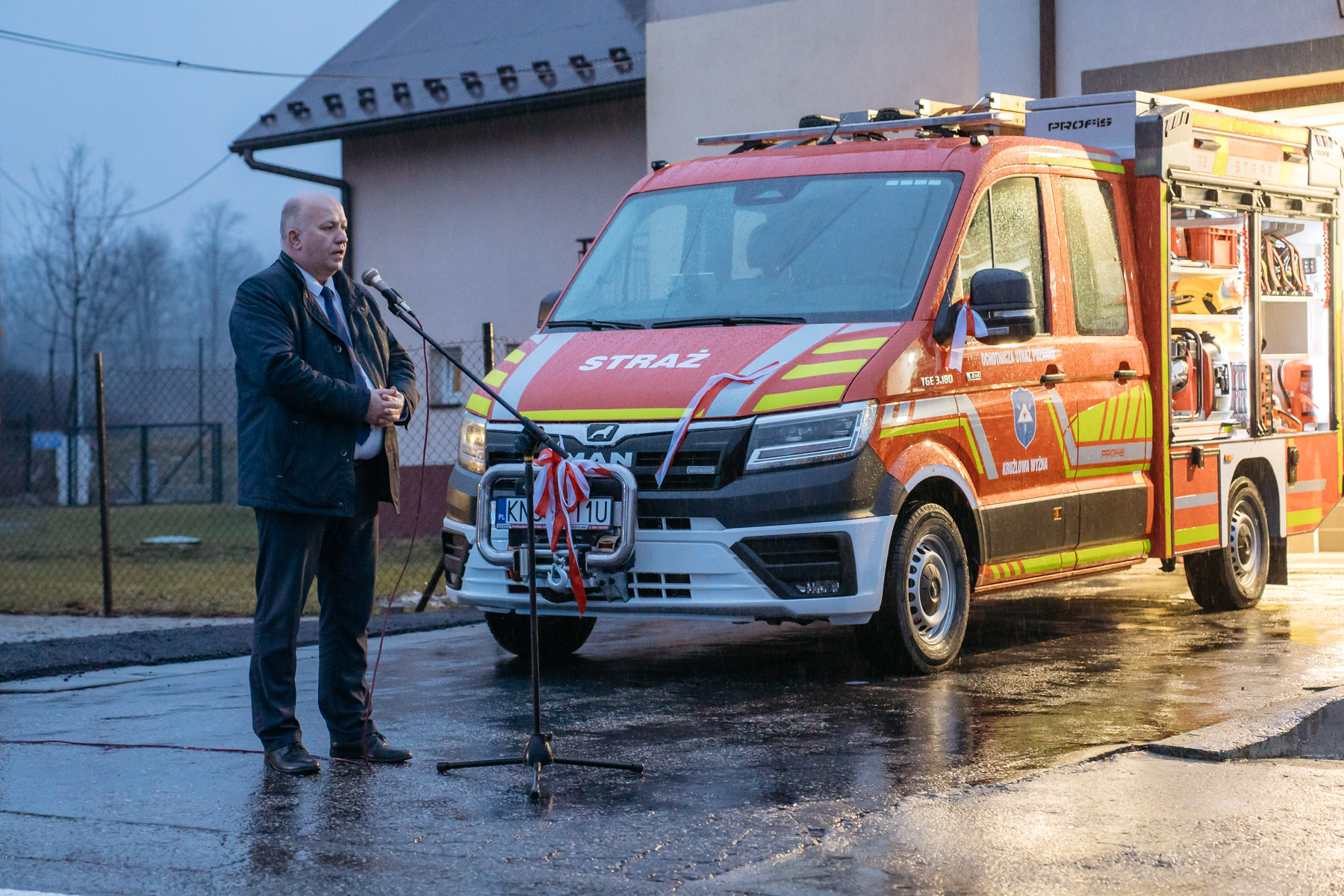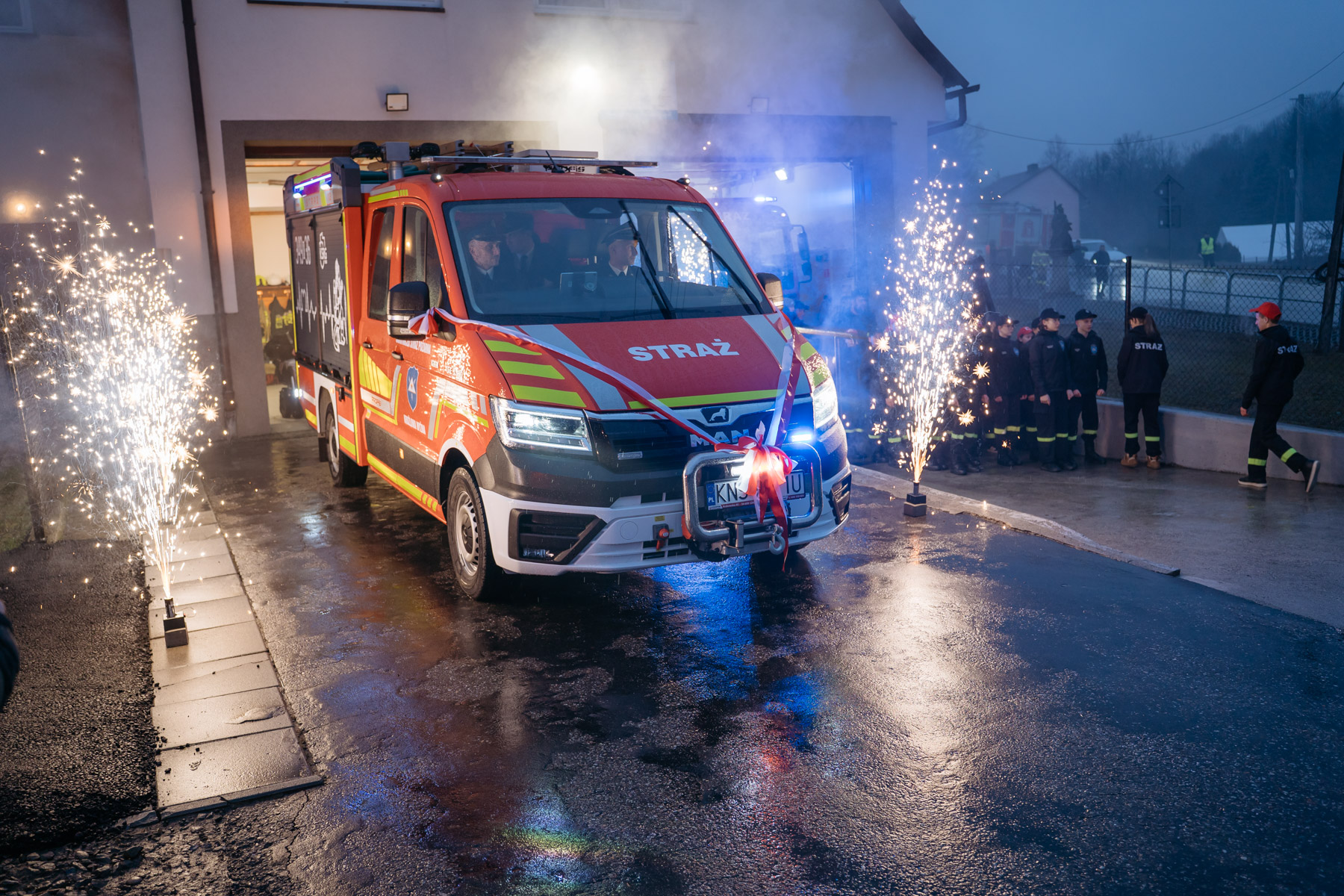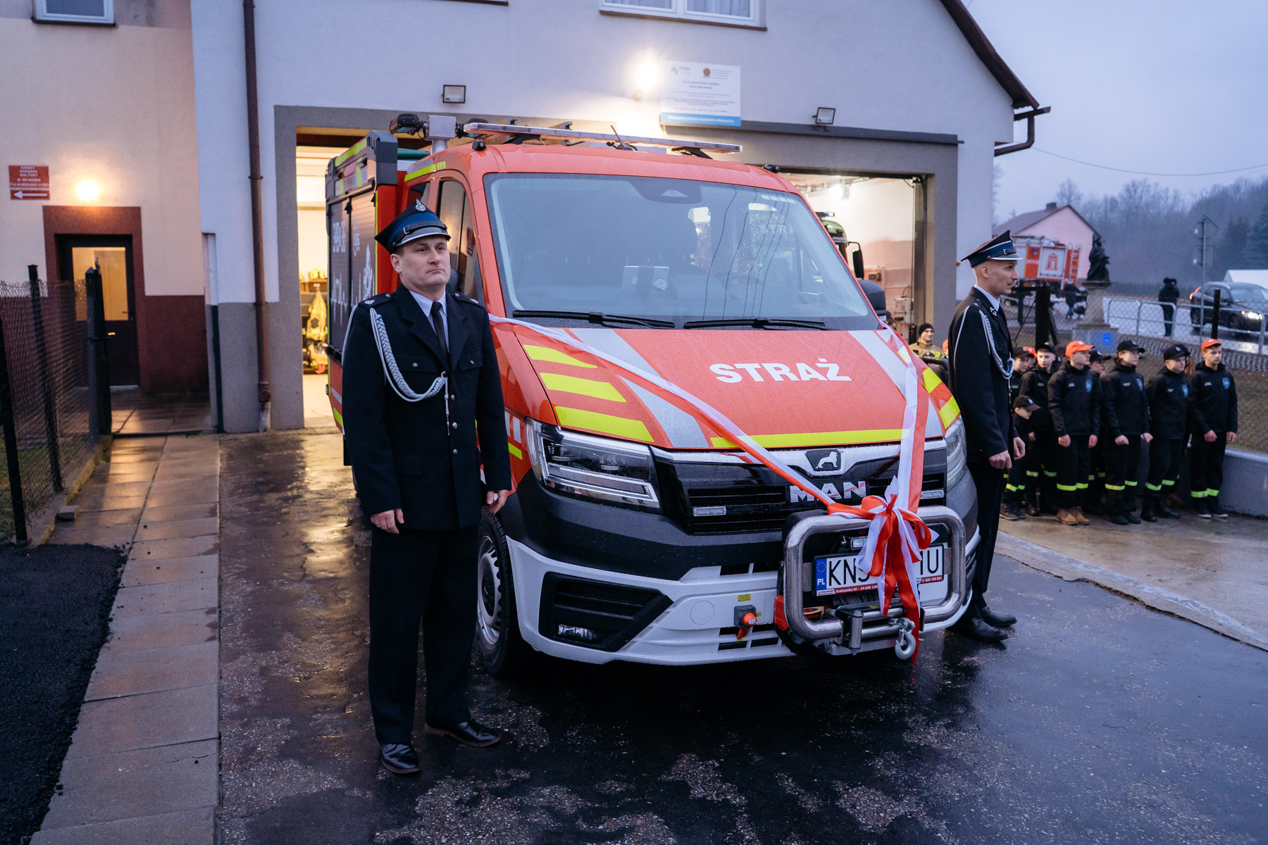14 lutego 2026 roku odbyło się uroczyste powitanie fabrycznie nowego samochodu dla jednostki OSP Krużlowa Wyżna – MAN TGE 3.180 4×4, lekkiego samochodu ratowniczo-gaśniczego.