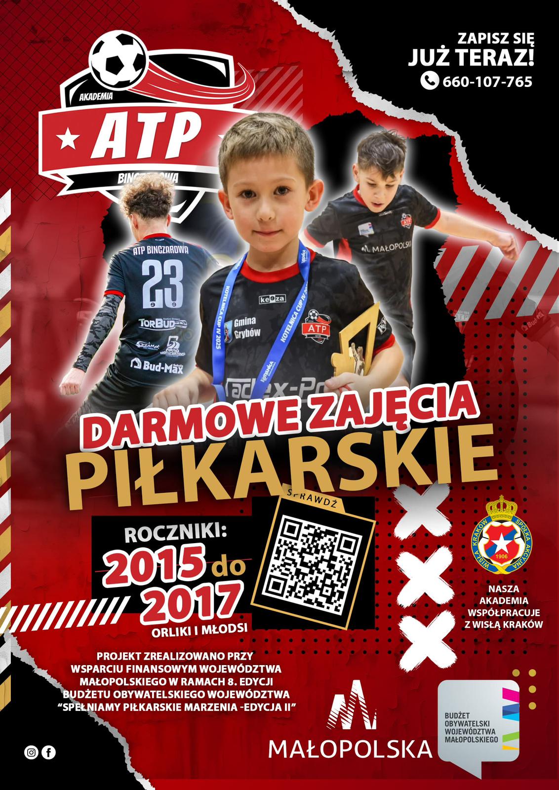 Fundacja TADEX-POL z siedzibą w Binczarowej zaprasza dzieci i młodzież do uczestnictwa w darmowych zajęciach piłkarskich. Szczegóły na plakatach poniżej: