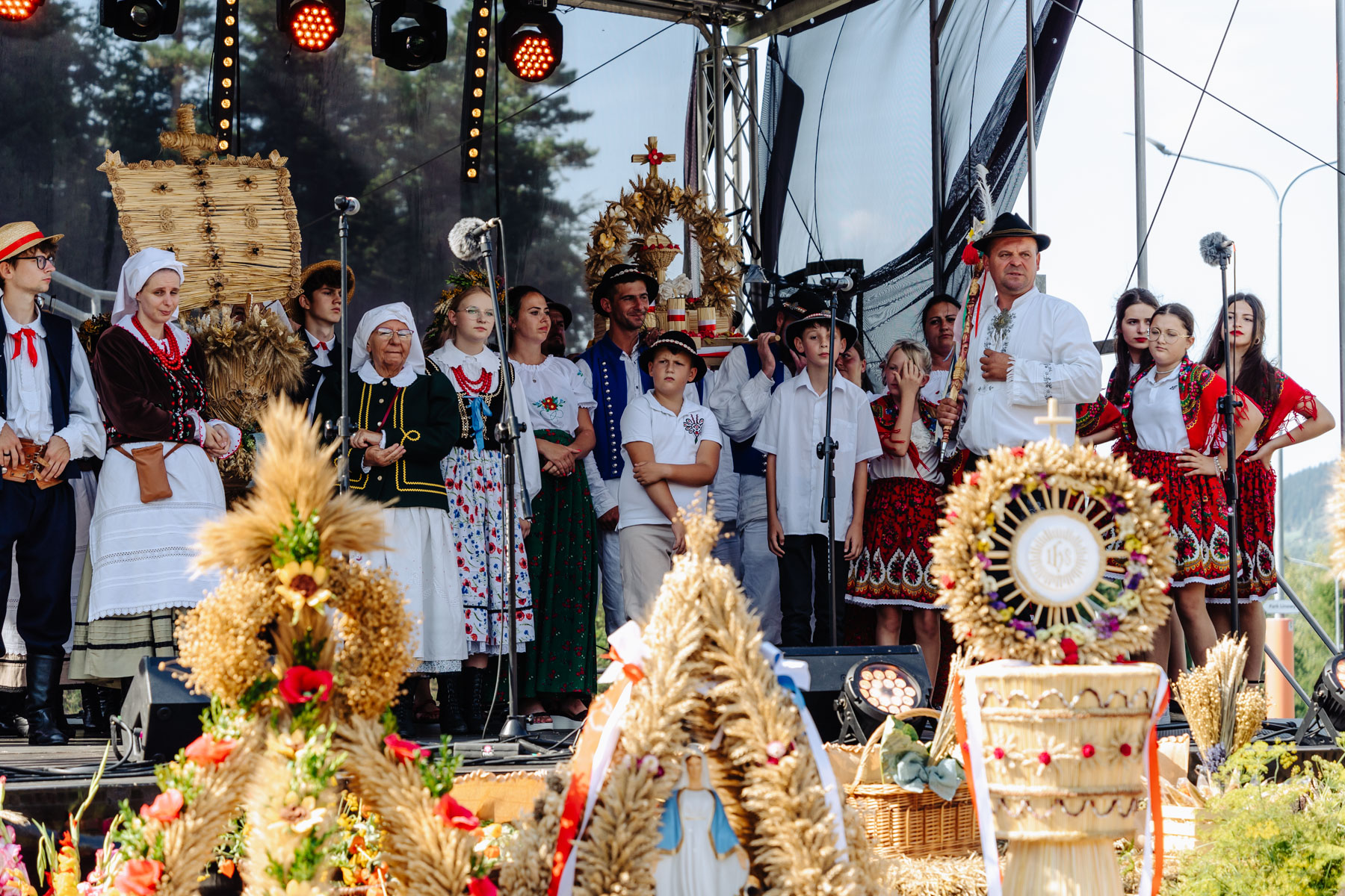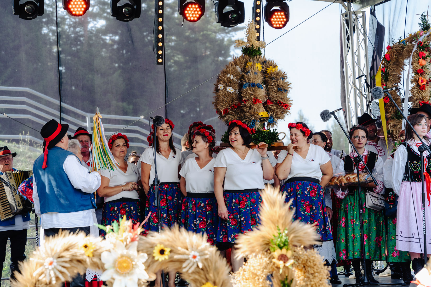 Po uroczystej Mszy Świętej delegacje z każdej wioski zaprezentowały swoje wieńce dożynkowe, a także przygotowały program artystyczny, który obejmował tradycyjne „obtańcowanie” wieńca. W programie tegorocznych dożynek znalazło się także wiele atrakcji dla dzieci i całych rodzin, występ gwiazdy wieczoru – Zespołu „Pogwizdani”, oraz zabawa taneczna przy muzyce zespołu Bajlando Band.