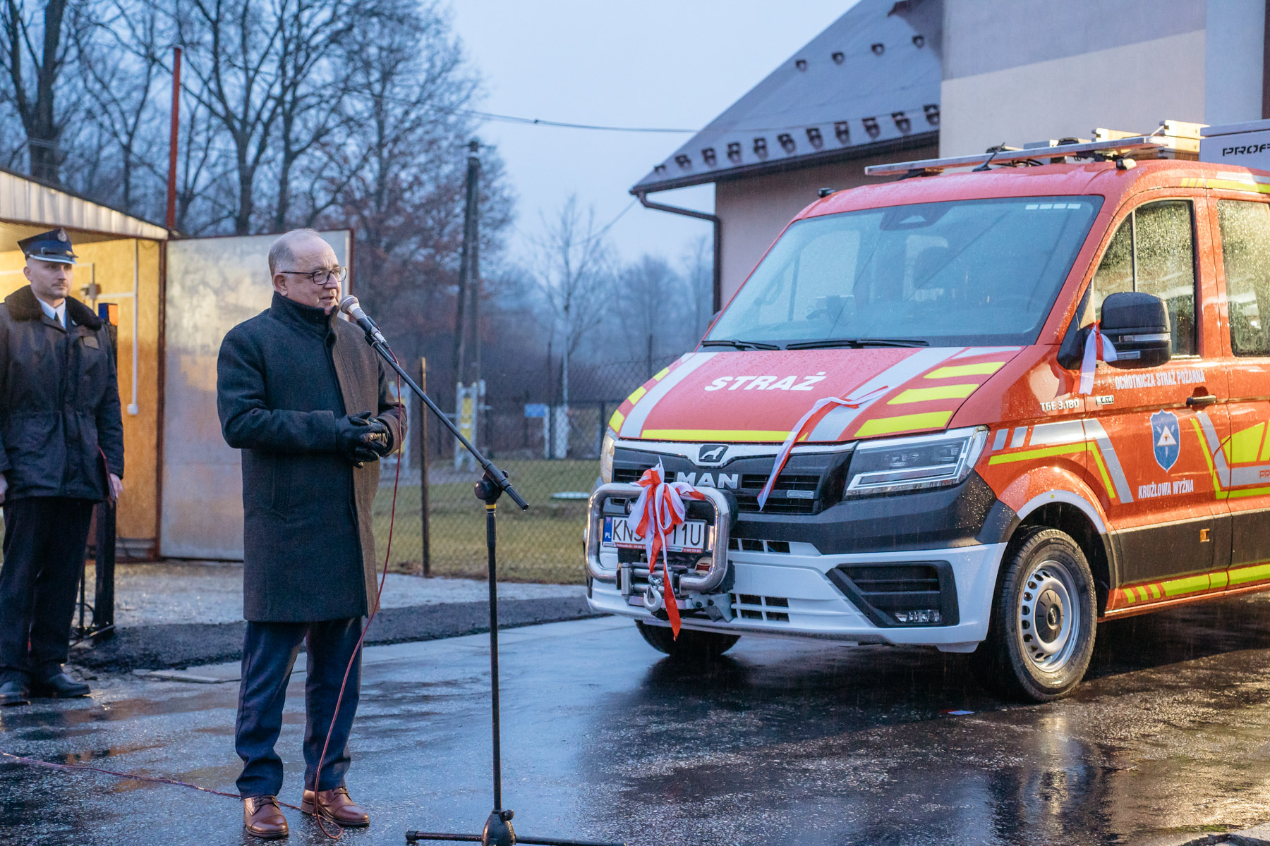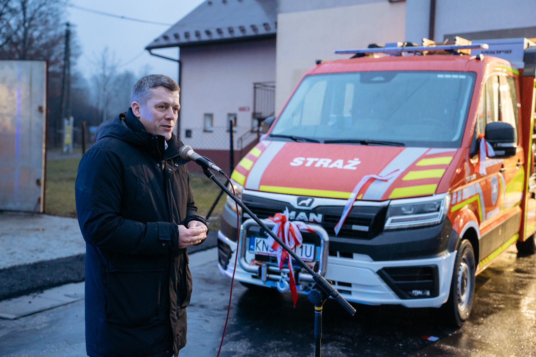 14 lutego 2026 roku odbyło się uroczyste powitanie fabrycznie nowego samochodu dla jednostki OSP Krużlowa Wyżna – MAN TGE 3.180 4×4, lekkiego samochodu ratowniczo-gaśniczego.