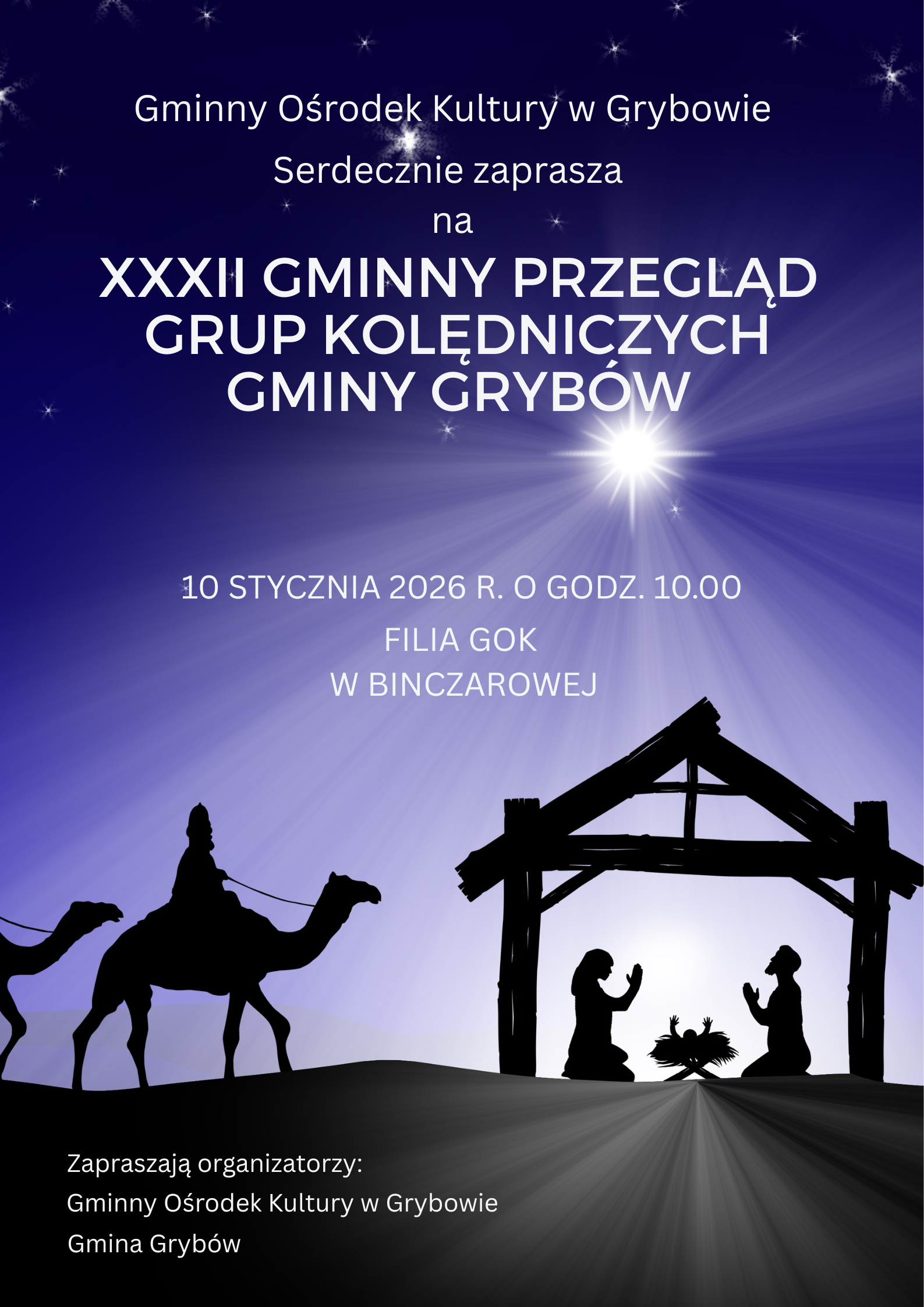 Zapraszamy mieszkańców Gminy Grybów oraz gości na XXXII Gminny Przegląd Grup Kolędniczych Gminy Grybów.